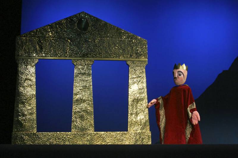 König Midas ist habgierig. Er wünscht sich, dass alles, was er mit seinen Fingern berührt, zu Gold werden soll. Und siehe da: Es funktioniert! Sogar das Brot, die Trauben und der Wein werden zu Gold. Doch wie soll Midas jetzt satt werden? Glücklicherweise weiß Dionysos Rat und Midas kann sich am Fluss von der goldenen Gabe reinwaschen.