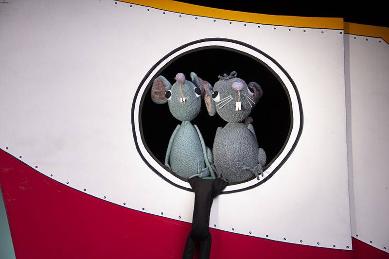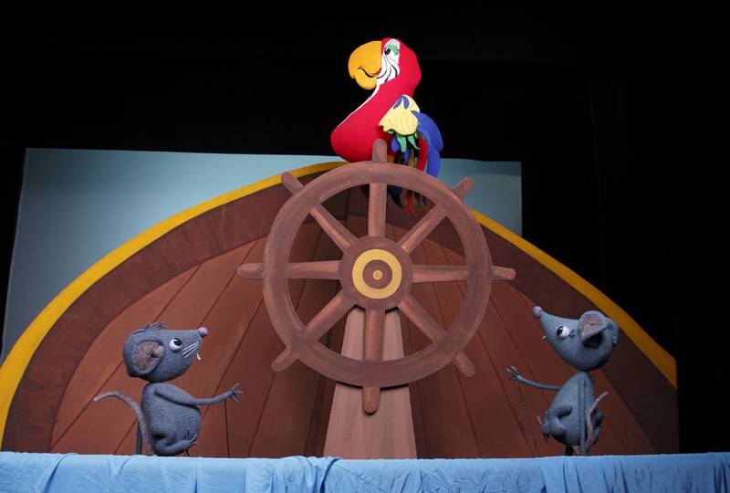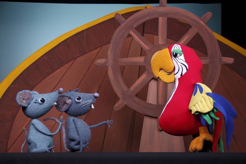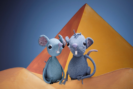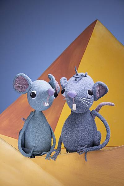 Am nächsten Morgen stoßen Mausi und Klausi gegen die Ankerkette eines Dampfers. An Bord treffen sie auf eine Kohle schaufelnde Ratte und auf einen Papagei, den Kapitän des Ozeandampfers. Als die beiden schließlich wieder an Land gehen, finden sie sich in Alexandria wieder. Die Mäuse erkunden das Land der Pyramiden, treffen auf exotische Tiere und machen sich auf die Suche nach dem Land der Vögel. Dort treffen sie den Storch Adebar, einen alten Bekannten von Klausis Bauernhof, der sie mit nachhause nimmt.
