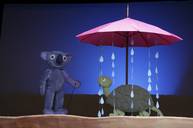 Irgendwo, ziemlich weit weg, in einem kahlen, aber schönen Land, in dem man gut träumen kann, lebt Koko, der Bär mit der komischen Nase. Als Koko mal wieder an seinem Lieblingsplatz schläft und träumt, wirft ihm ein seltsamer Vogel mit einem langen weißen Bart einen roten Regenschirm vor die Füße. Noch nie zuvor hat Koko so einen Schirm gesehen, weshalb er auch nicht weiß, was er damit machen soll. Er verwendet ihn als Spazierstock und bricht auf zu einem Spaziergang voller Überraschungen.
